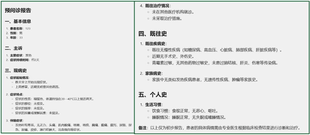 医疗问诊智能体 全览 image/svg+xmlAI 数字医生 (达康) 实现 AI 数字医生辅助下的智能预问诊与专业医疗解答 解决方案 背景痛点 可读性挑战:患者自述常含模糊、口语 化表述, AI 助手需精准提取关键信息 复杂性挑战:多症状、多病种并存,数 字医生需提升语义解析与匹配能力 准确性挑战:模型幻觉,需要增强可靠 性以提升回答准确性 基于交互式问答采集症状信息,引导患者 完成结构化预问诊流程 基于医学文献构建知识库,增强模型医疗 语义理解与知识覆盖 基于可信问答机制优化幻觉问题,提升答 案准确性与信息可靠性 成果介绍 预置 37 种常见症状,支持自定义扩展, 交互式引导患者完成结构化信息采集 基于知识库与幻觉抑制机制,确保回答 可靠,支持自然语言理解与主动追问 自动生成预问诊报告,医生端可按患者 号快速检索与查询 项目名称: 《 达康 AI 数字医生助手 》 背景痛点 表述模糊 患者自述常含口语化表述,提取关键信息难 病情复杂 多症状、多病种并存,语义解析难度大 模型幻觉 医疗场景对准确性要求极高,需消除幻觉 解决方案 交互式问答 引导患者完成结构化预问诊流程 医学知识库 增强模型医疗语义理解与知识覆盖 可信机制 优化幻觉问题,提升答案可靠性 成果介绍 37种症状 预置 37 种常见症状,支持自定义扩展 结构化采集 交互式引导患者完成信息采集,生成报告 回答可靠 幻觉抑制机制确保回答准确,支持主动追问