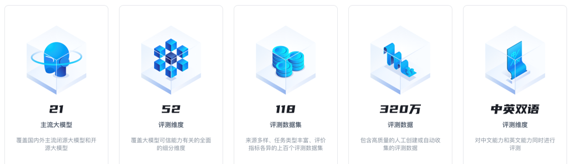 TrustedGPT大模型可信评测平台类似大模型比武擂台上的裁判,面对21种国内外主流大模型,能够运用118个评测数据集,涵盖320万条中英文评测数据,从52个评测维度出发,评估每位选手的表现,并提供动态更新的可信度评测榜单
