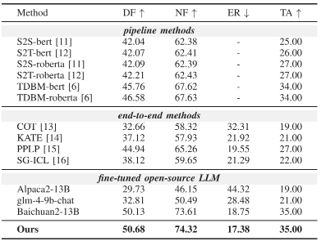 三个公开数据集(AV2 的 14res、14lap、15res、16res)上,模型在F1分数上均优于所有基线方法
